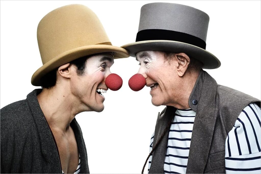“A maquiagem do palhaço funciona como uma máscara sagrada que exterioriza a psique do personagem e estabelece uma conexão imediata com o público. Historicamente, a diferenciação visual entre tipos como o branco, de rosto alvo e traços autoritários e o Auguste, de feições exageradas e coloridas, permitiu a exploração de hierarquias sociais no picadeiro. No contexto brasileiro, essa pintura evoluiu de traços pesados e caricatos para formas mais sutis e orgânicas, buscando uma relação de transparência e verdade cênica que permite ao espectador enxergar a humanidade por trás da tinta”, pontua Bueno.