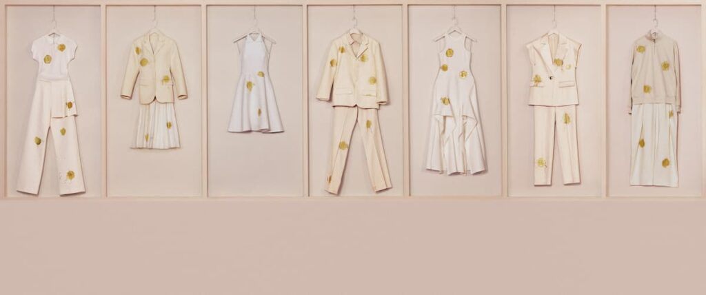 O projeto que materializa essa inspiração é uma coleção cápsula onde a moda serve de tela para o tênis. Desenhadas por Marina, as peças também recebem a assinatura de Sabalenka, mas de uma forma surpreendente e autêntica: a tenista utilizou seus icônicos forehands para estampar os tecidos usando bolas de tênis mergulhadas em pigmentos dourados, transpondo a energia vibrante das suas partidas diretamente para o design sofisticado da marca.